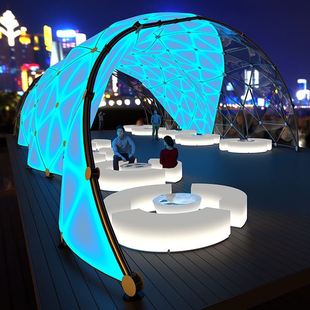 Новую технологию INFINITYCONSTevoX с пневмолинзами ETFE можно использовать для создания уличных...